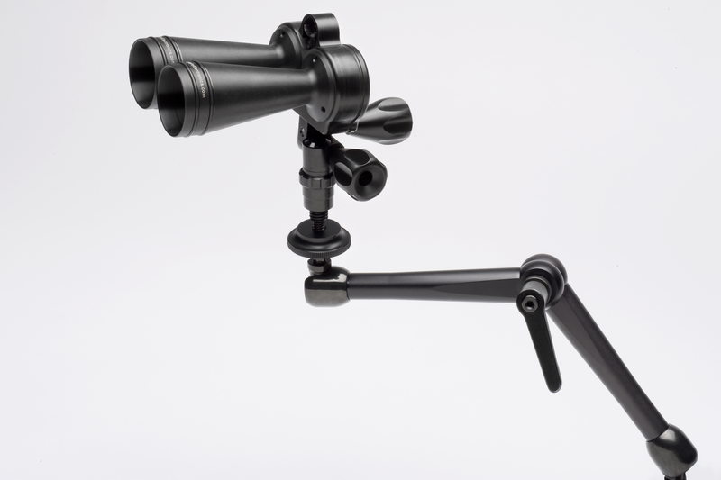 into a rigid support arm with a twist of the central lock down knob. The arm has a