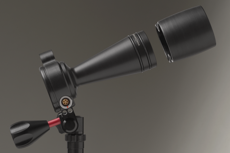 Extension Tubes | For situations where a tighter measuring area is desired, Cinematography Electronics offers the CineTape EXTENSION TUBES. Attaching these tubes to the Sensor Horns will reduce the diameter of the signal pattern approximately twenty percent (20%). This is important for situations where a tighter smaller measuring diameter is desired. Our EXTENSION TUBES are machined to an ultra-precise smooth shape and finish which is essential for accurately directing the ultrasonic signals towards the sensors. Attach the binocular shaped EXTENSION TUBES to the Sensor Horns by simply pushing them over the horn’s O-rings. The interior contour shape of our EXTENSION TUBES perfectly matches the contour of our Sensor Horns. This uninterrupted internal profile directs the ultrasonic waves in a precise manner towards the sensor, which results in a narrower measurement field without losing any of the distance range. |  Click for larger image | Attach the EXTENSION TUBES by sliding the tubes onto the sensor horns. The O-rings, on the Sensor Horns, hold the EXTENSION TUBES in place which allows easy attachment and removal without tools. No need for two sets of horns, just slip the lightweight EXTENSION TUBES on for a narrow measurement pattern, or pull them off for a wider pattern. When attached, they add about one inch to the length of the horns. This is a great accessory for every focus pullers kit. |  Click for larger image |